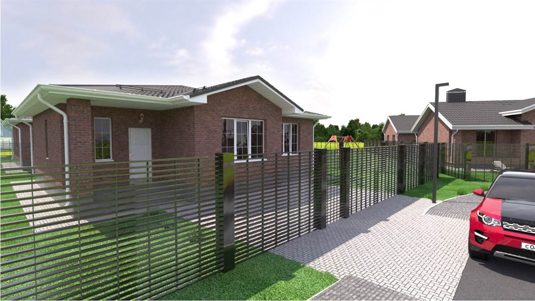 Жилой комплекс расположен в селе Ямное Рамонского района Воронежской области. Этажность дома ‒ одноэтажный, общая площадь ‒ 98 кв. м. Высота потолков составляет 3 метра. В доме имеются: три изолированные комнаты, кухня-гостиная 28 кв. м, санузел. Дом сдается в предчистовой отделке ‒ штукатурка стен, тёплый пол предчистовой, радиаторы отопления в жилых комнатах. Все коммуникации проведены: вода, электричество, газ, котёл, канализация ‒ септик. Дом располагается на участке 4 сотки. Материалы, применяемые при строительстве дома: стены ‒ газосиликатный блок, облицовка ‒ облицовочный кирпич, крыша – металлочерепица, фундамент ‒ монолитная плита.
