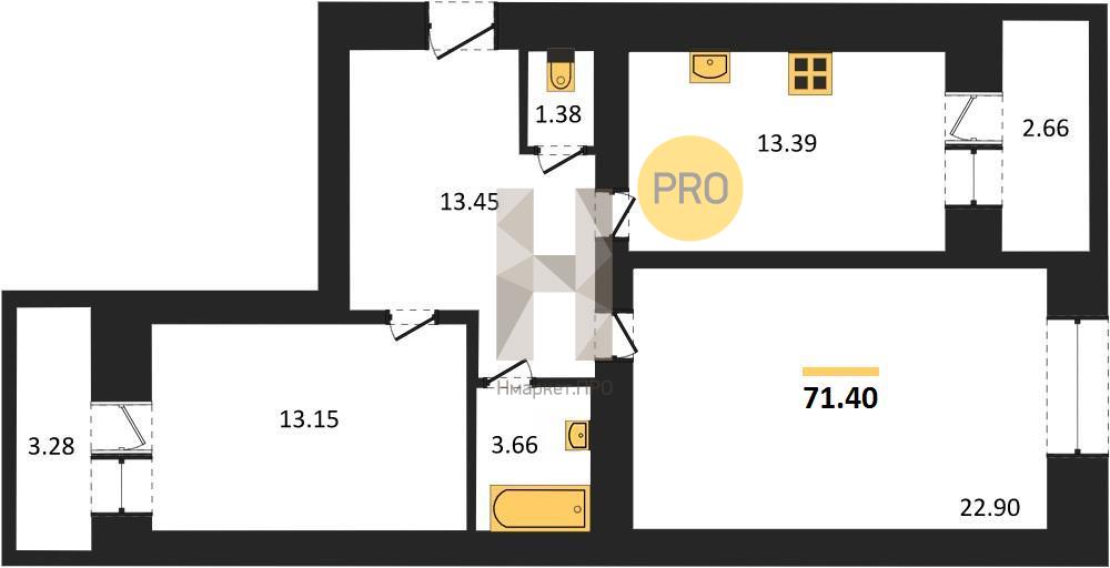 - 71.4 м2