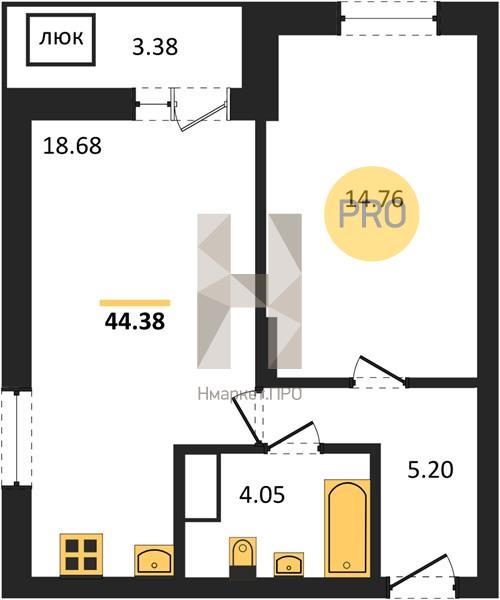 - 44.38 м2