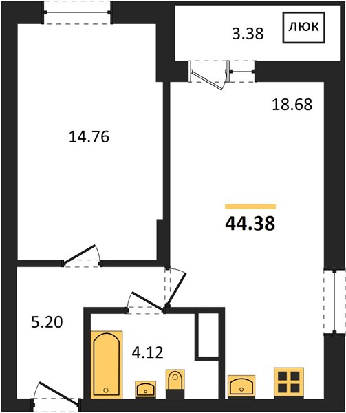- 44.38 м2