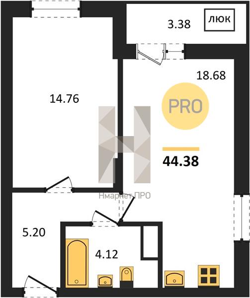 - 44.38 м2