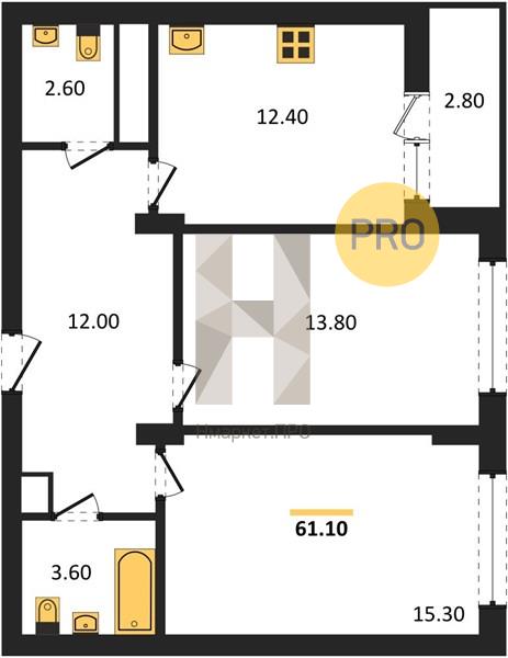 - 61.1 м2