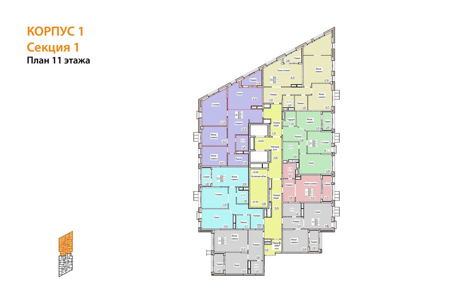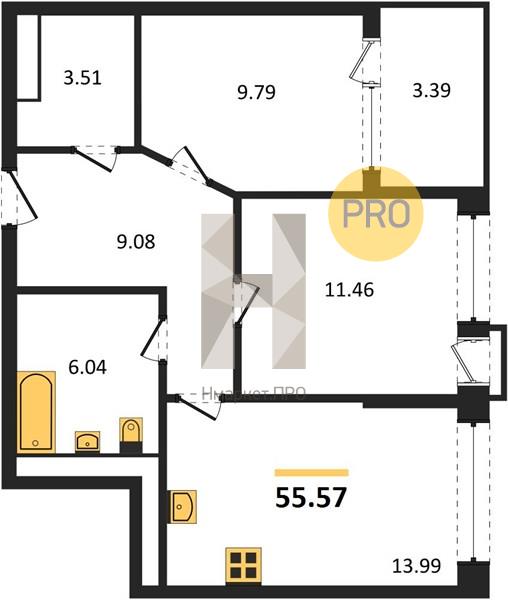 Квартира: 2 к 55,57 кв.м., 11 этаж в комплексе Z-town, 1 очередь, корп.1, сдача: 2кв. , этажей: 21, адрес Воронеж г., Чуева наб., д. 7, Застройщик: Новый код.
