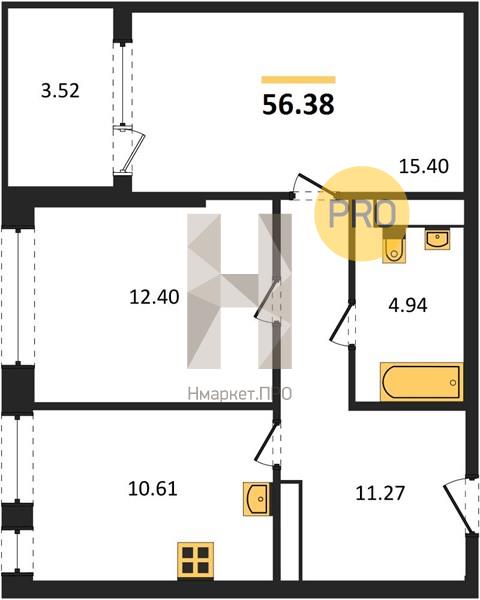 Квартира: 2 к 56,38 кв.м., 4 этаж в комплексе Z-town, 1 очередь, корп.1, сдача: 2кв. , этажей: 21, адрес Воронеж г., Чуева наб., д. 7, Застройщик: Новый код.