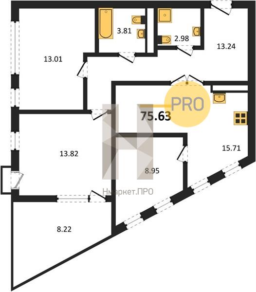 Квартира: 3 к 75,63 кв.м., 6 этаж в комплексе Z-town, 1 очередь, корп.1, сдача: 2кв. , этажей: 21, адрес Воронеж г., Чуева наб., д. 7, Застройщик: Новый код.