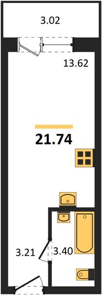 - 21.74 м2