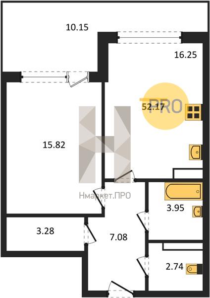 Квартира: 1 к 52,16 кв.м., 10 этаж в комплексе Бунин, 3 очередь, корп.1 (Секции 6,7), сдача: 2кв. , этажей: 23, адрес Воронеж г., Московский пр., д. 136, Застройщик: ВДК.