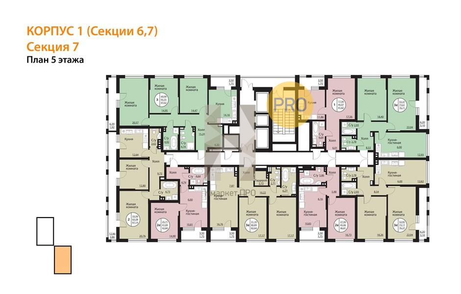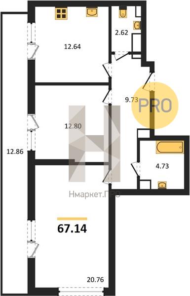 Квартира: 2 к 67,14 кв.м., 5 этаж в комплексе Бунин, 3 очередь, корп.1 (Секции 6,7), сдача: 2кв. , этажей: 23, адрес Воронеж г., Московский пр., д. 136, Застройщик: ВДК.