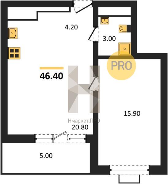 - 46.4 м2