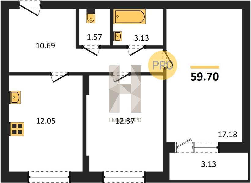 - 59.7 м2