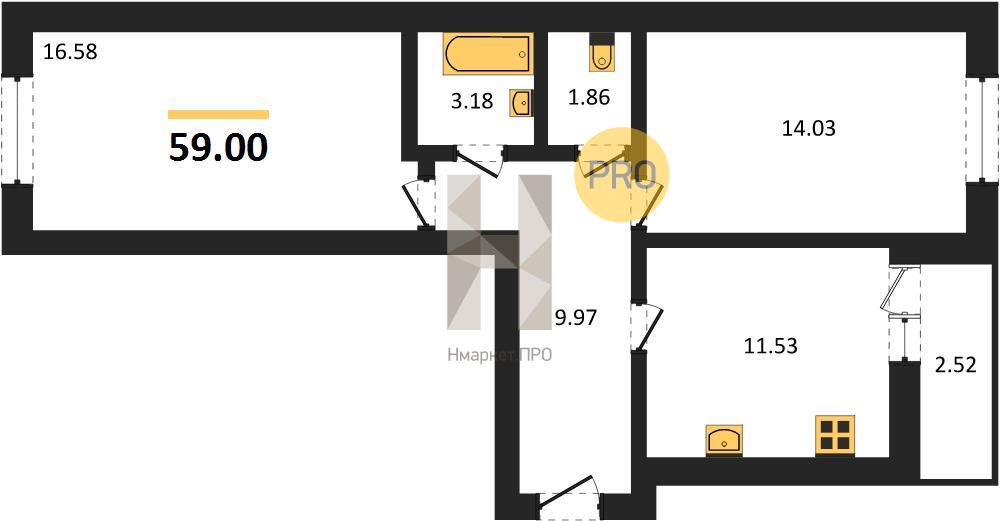- 59 м2