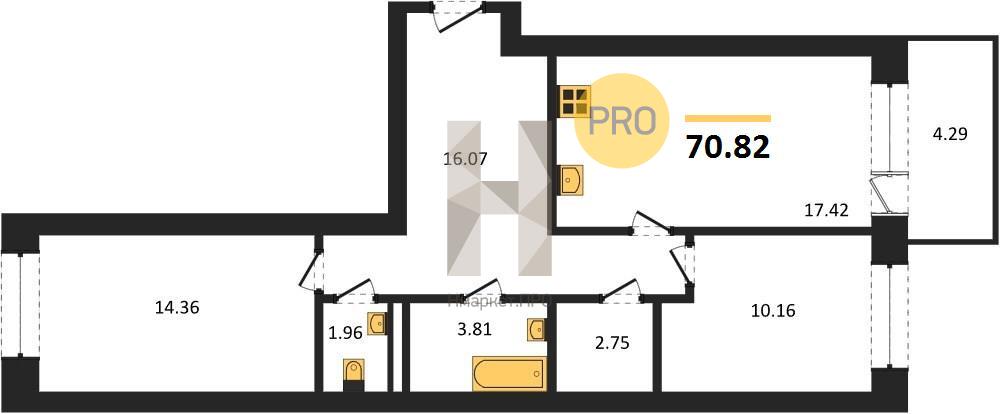 - 70.82 м2