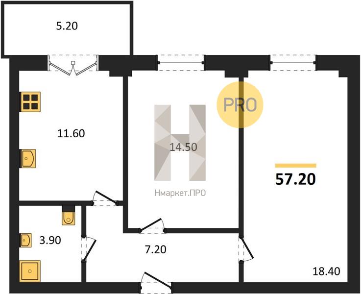 - 57.2 м2