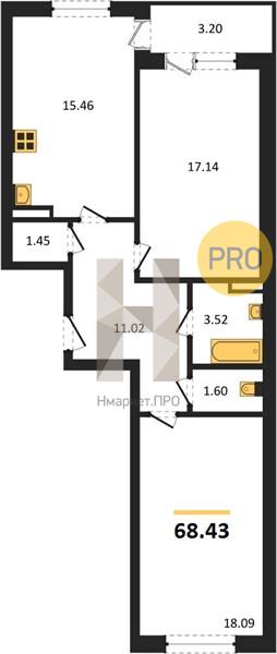 - 68.43 м2
