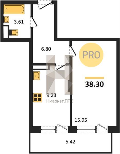 - 38.3 м2
