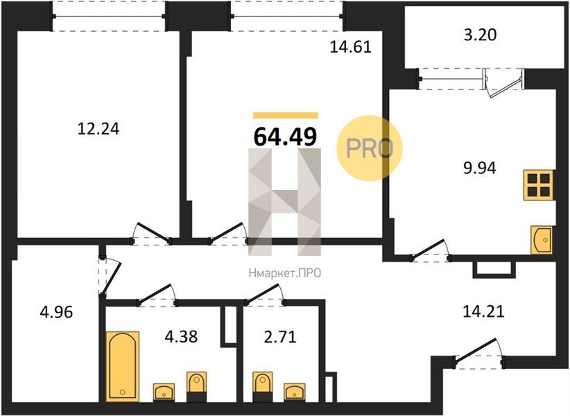 - 64.49 м2