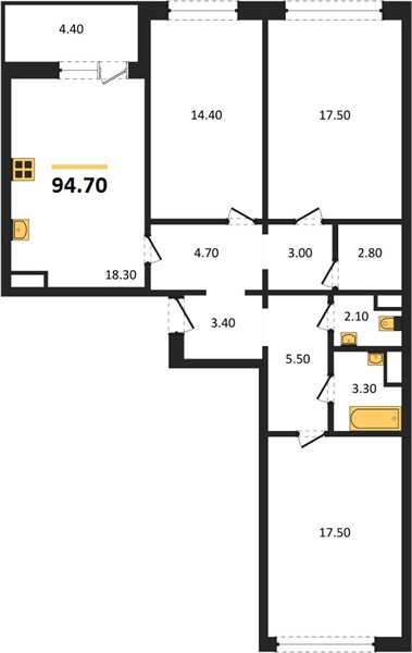 - 94.7 м2
