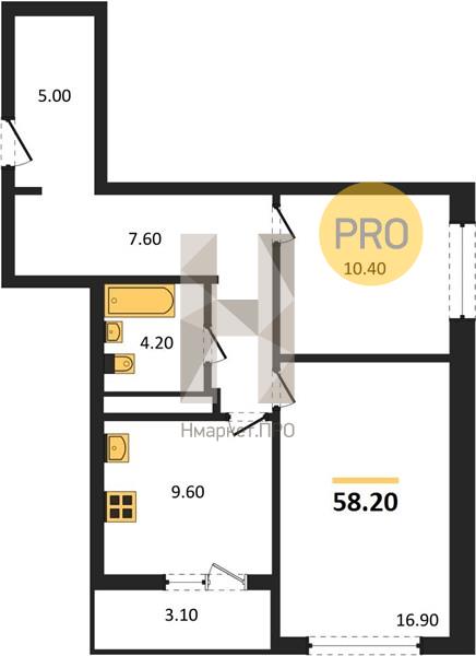 - 58.2 м2