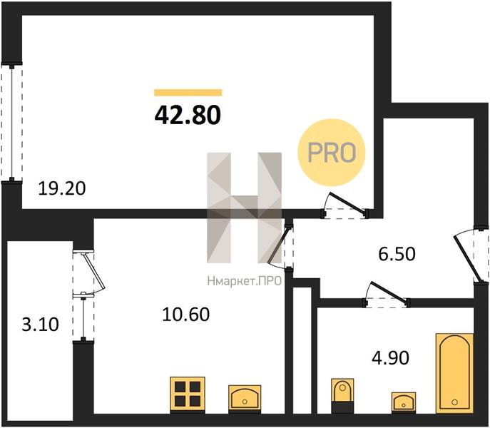 - 42.8 м2