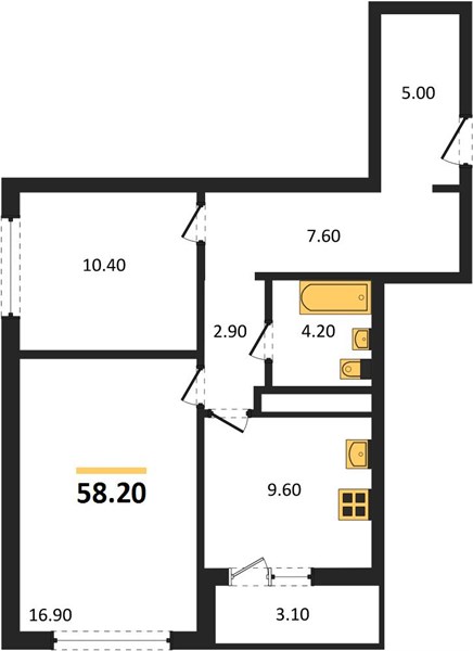 - 58.2 м2
