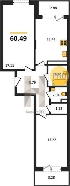 - 60.49 м2