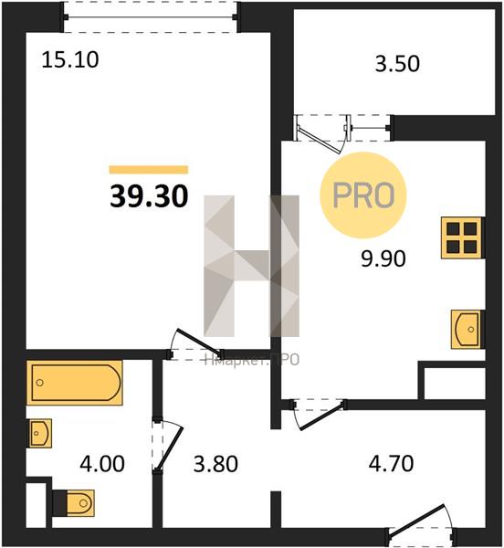 - 39.3 м2