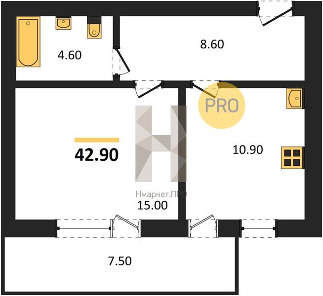 - 42.9 м2