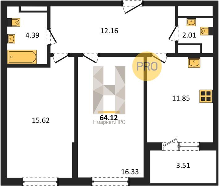 - 64.12 м2