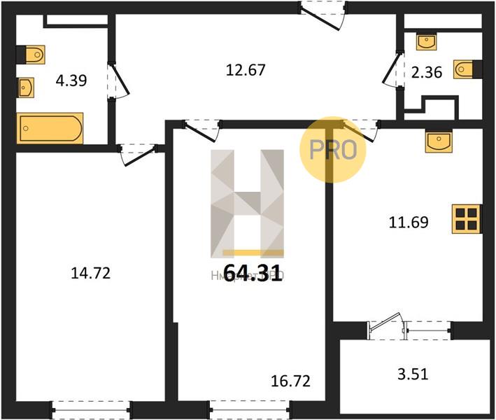 - 64.31 м2