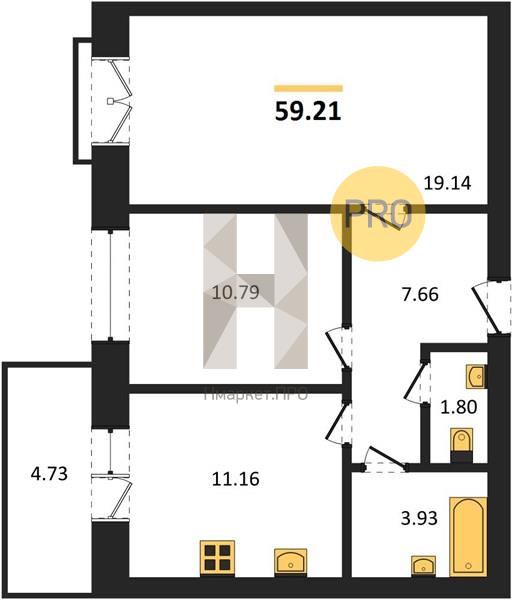 - 59.21 м2