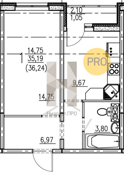 - 35.4 м2