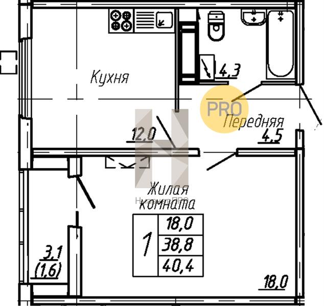 - 40.4 м2