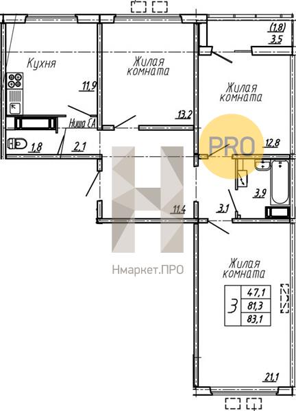 - 83.1 м2