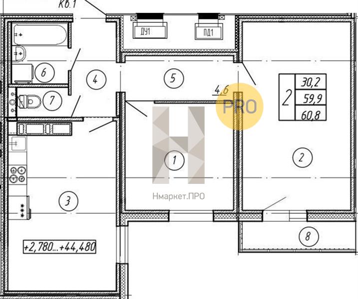 - 60.8 м2
