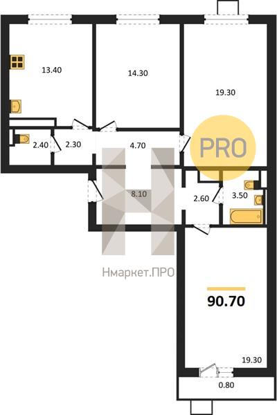 - 90.7 м2
