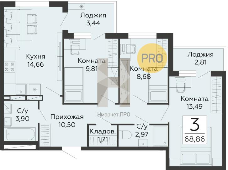 - 68.86 м2